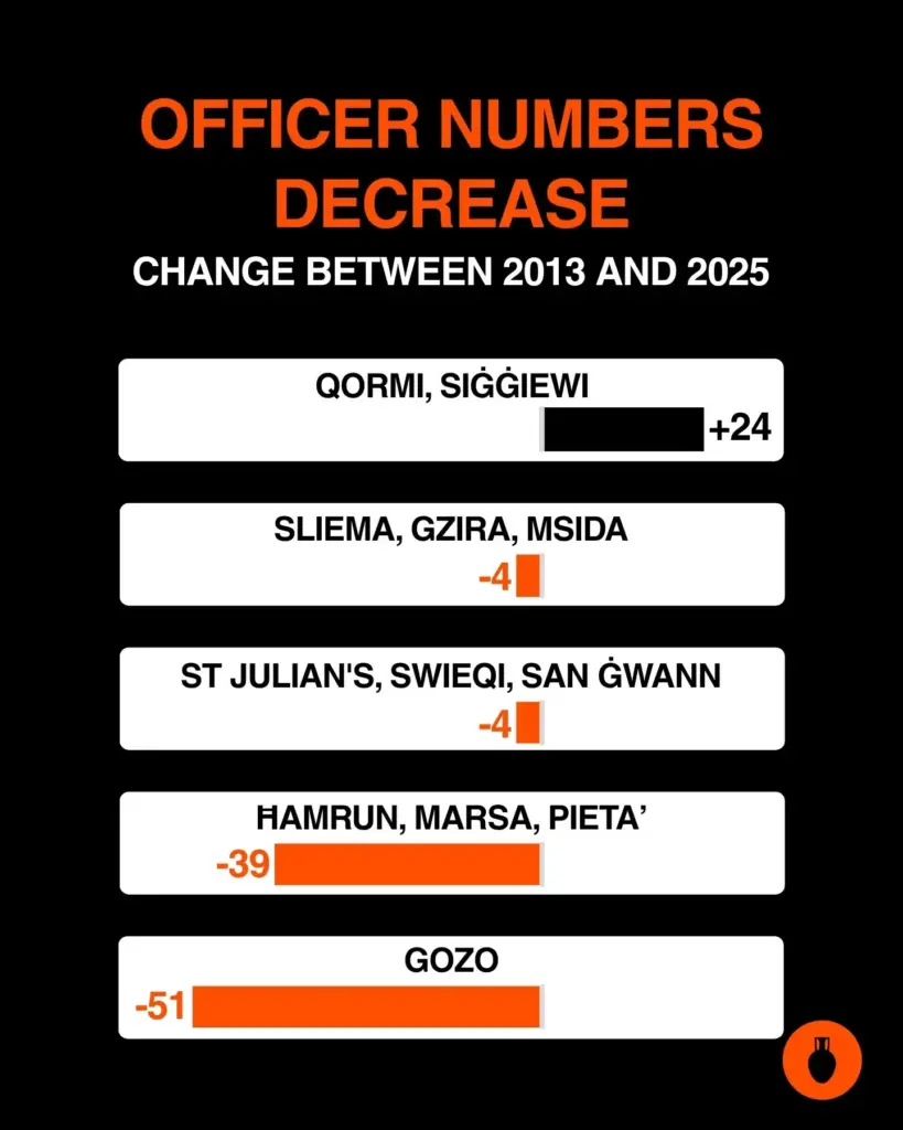 - Officer shortages are acute — in Sliema, Msida, and Gzira, one officer serves about 700 residents.