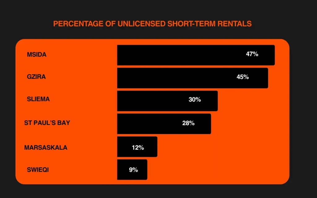Our analysis indicates that in some areas of Malta, nearly half of the Airbnb listings are unlicensed.