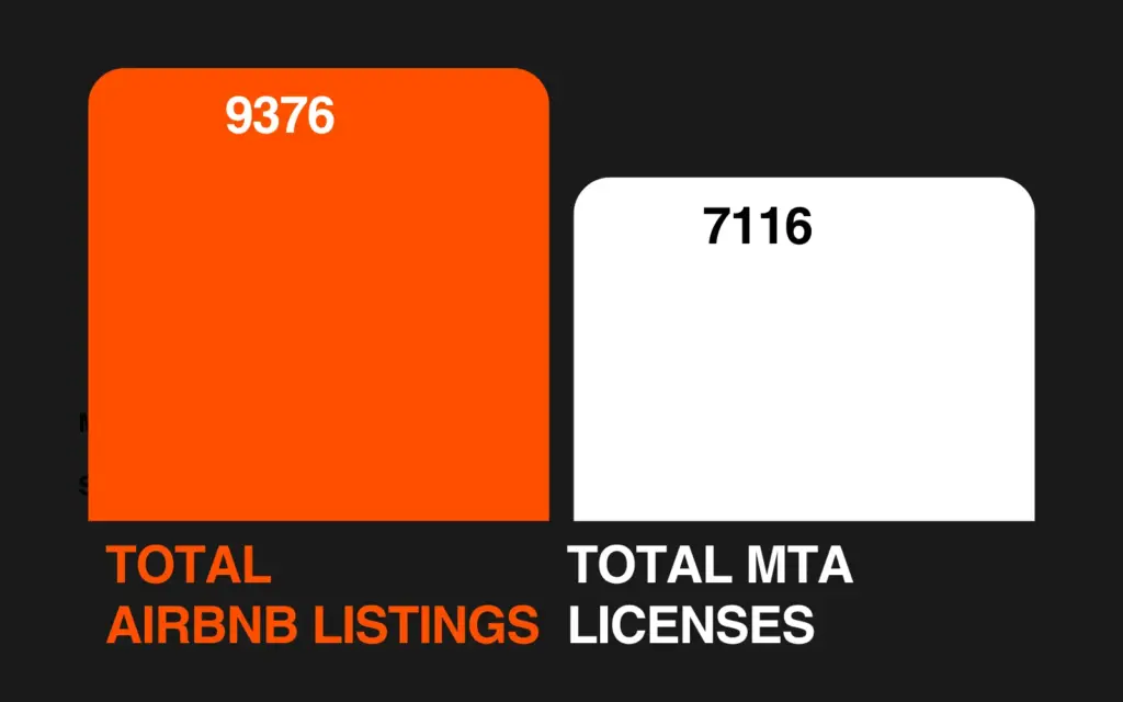 If you just subtract the number of licences from the number of Airbnb listings, the result can be misleading, because one licence can cover many rooms or apartments in the same place (like a hotel).